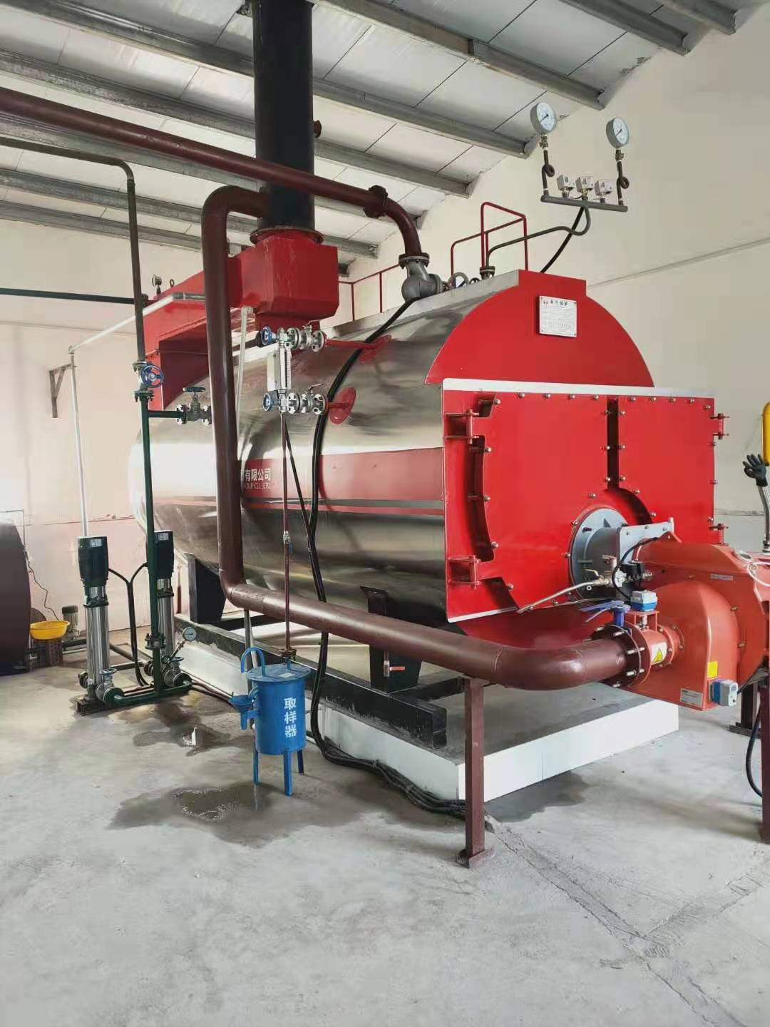 为了有效地监视、控制水位及压力,该锅炉配备有水位计(板式水位计、双色水位计各一)、水位控制报警器,锅炉具有高低水位报警和低水位连锁保护功能;还配备有压力表、压力控制器以及气路、水路流量计,能够充分满足监视及控制的要求。